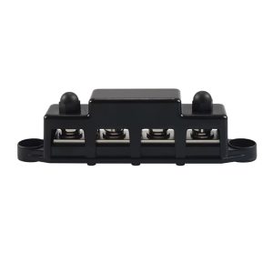 Bloque de Distribución de Energía (Bus Bar) 250A 12V-48V – 4 Pernos M8 con Cubierta Negra