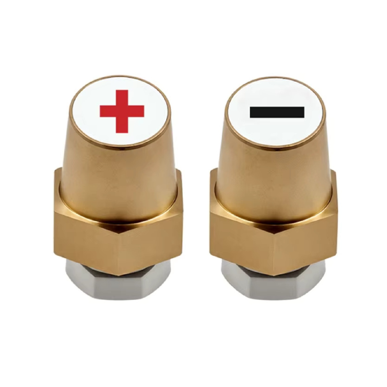 Adaptador borne batería bronce M8 positivo y negativo hilo pasado