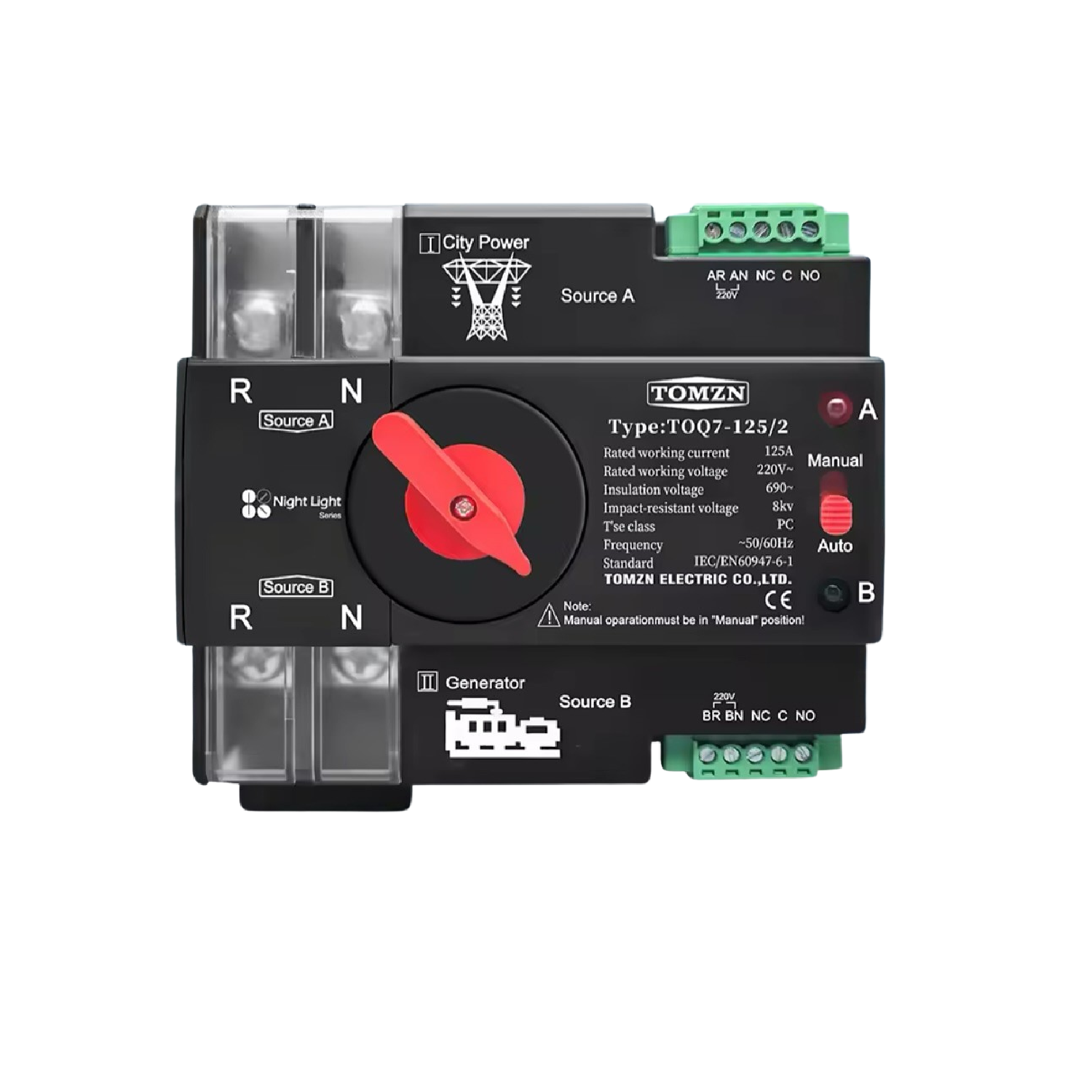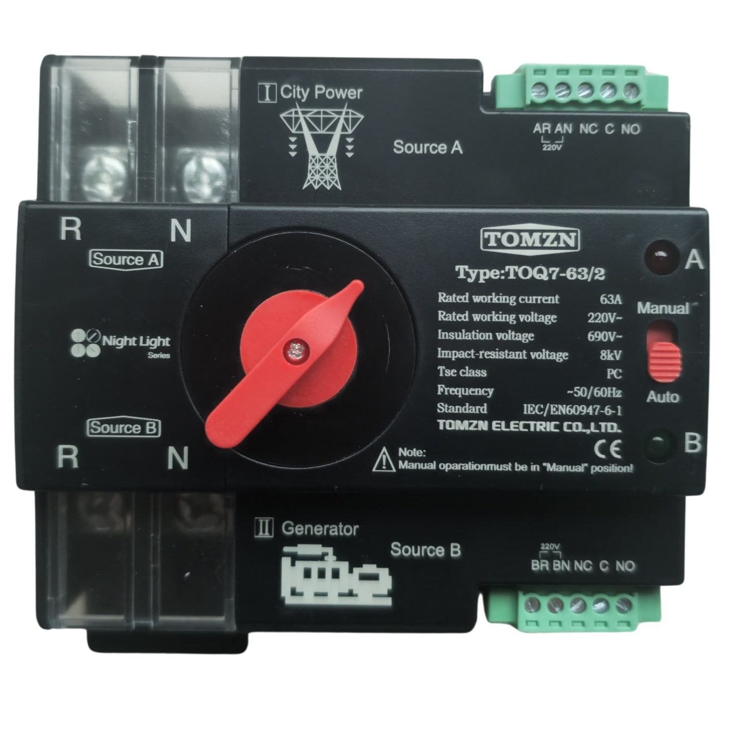 ATS Interruptor Transferencia Automática TOQ763/2 63A Riel DIN Red-Generador Tomzn