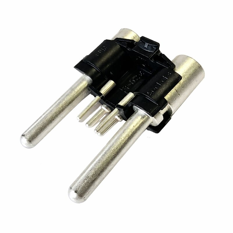 con recubrimiento de plata para alta conductividad y buena vida de acople, junto con carcasa polimera resistente a impacto y acido.