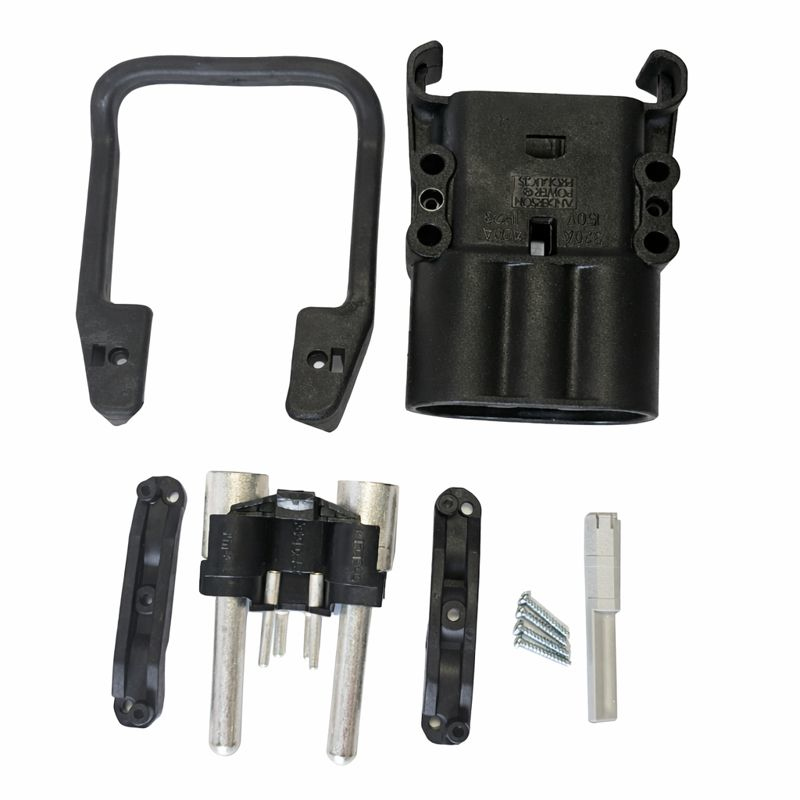 Kit completo para armar 1 conector Anderson A320 macho con power contact para cable 120 mm2 (4/0). Solucion industrial robusta para alta corriente, ideal para baterias, cargadores y vehiculos industriales. Crown 340320-415