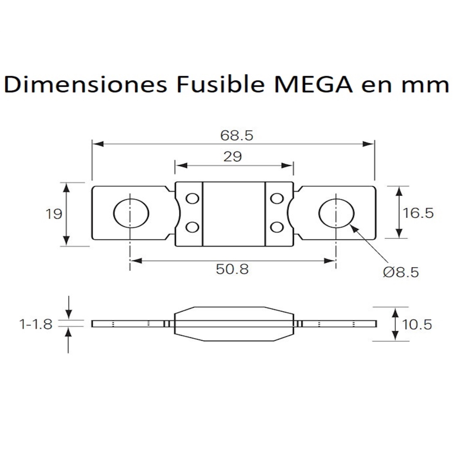 - Protección Avanzada: El fusible Mega 225A 70V asegura una protección óptima contra sobrecargas y cortocircuitos, preservando la vida útil de los equipos y baterías.