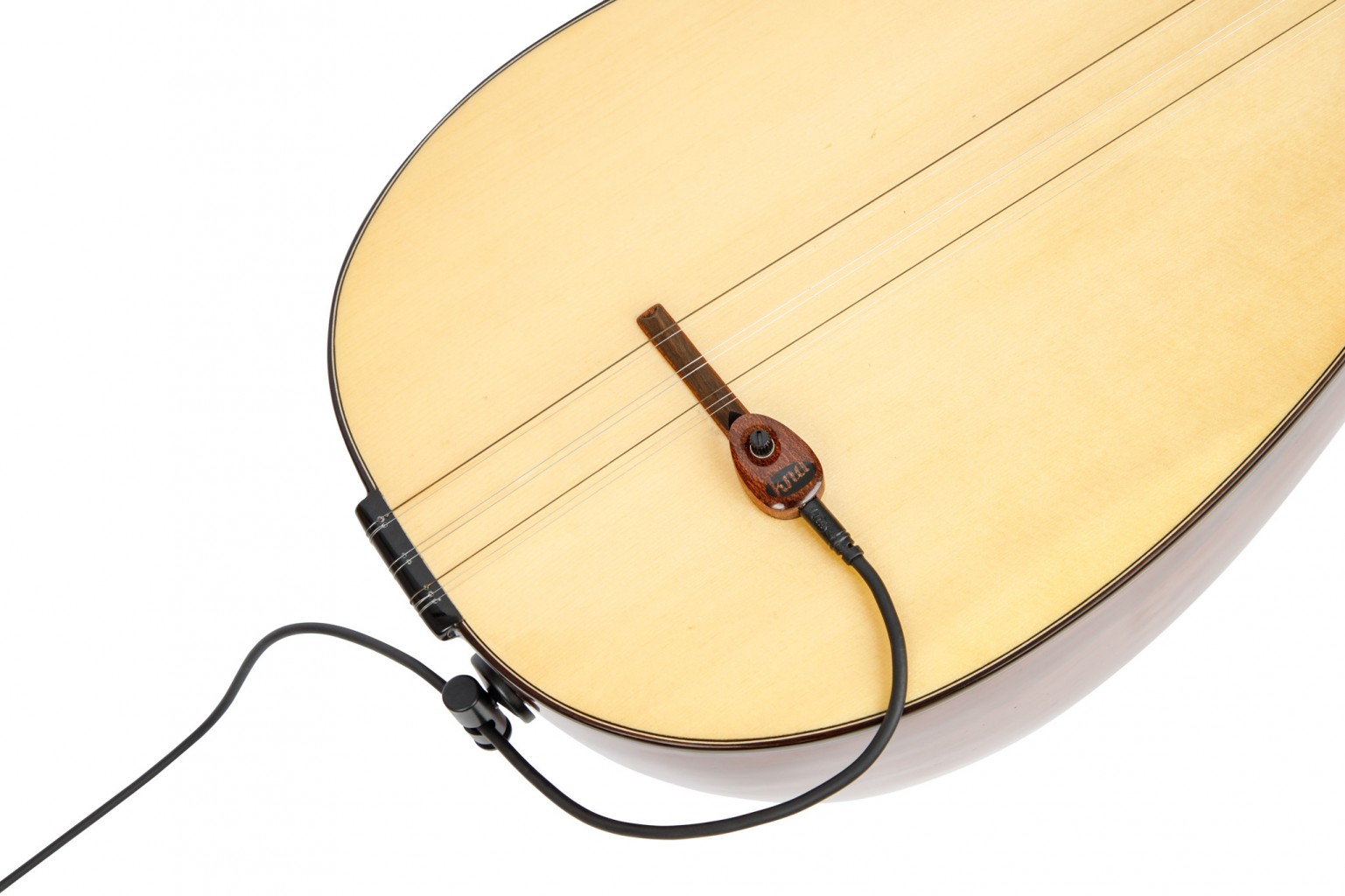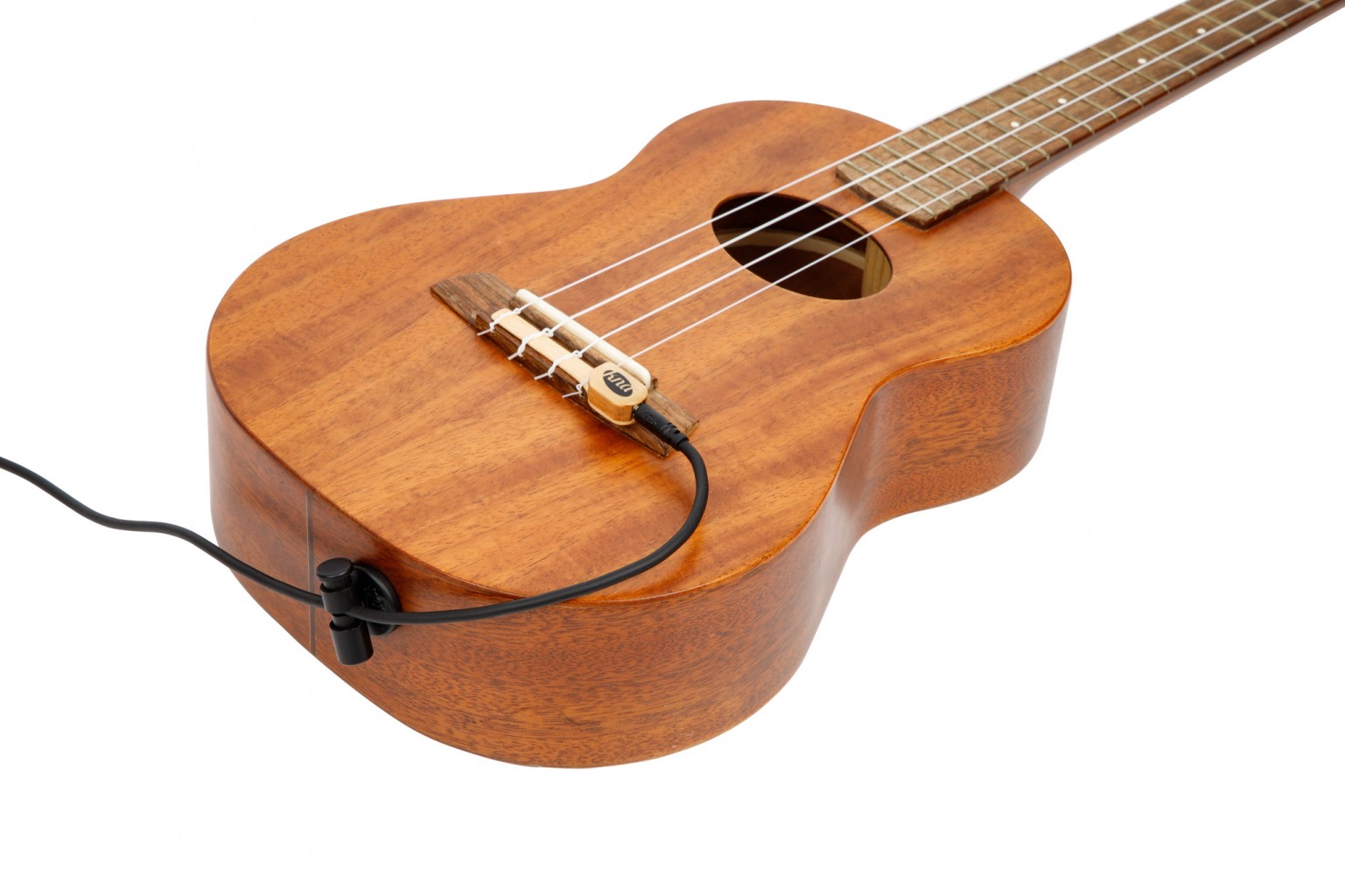 El UMSC se monta fácilmente con los discos adhesivos de doble cara incluidos . Simplemente elija el punto que prefiera en el cuerpo del instrumento y pegue el clip. Este método es rápido, estable y no invasivo , ideal para músicos que buscan una solución permanente y discreta.