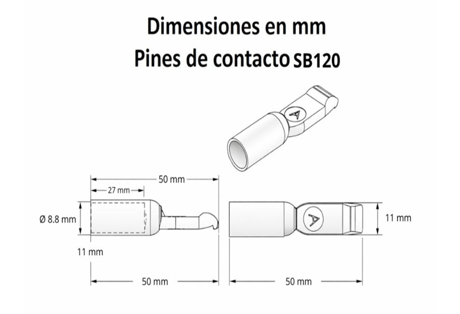 | SB50 | 50 Amperios | 12 AWG a 6 AWG | Cobre Bañado en Plata |