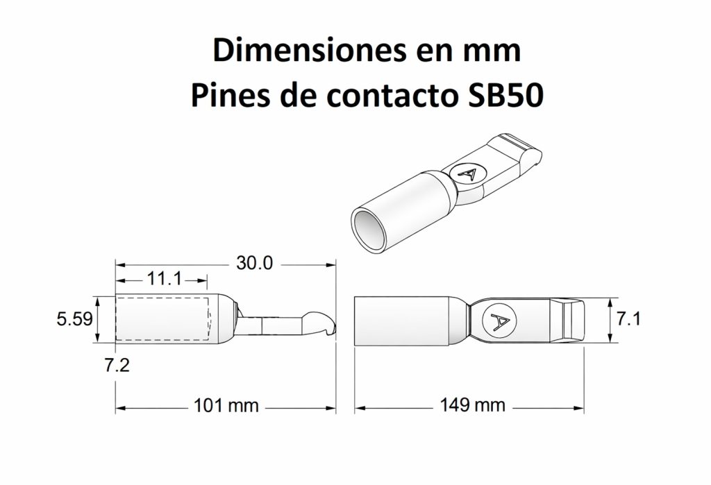 | SB50 | 50 Amperios | 12 AWG a 6 AWG | Cobre Bañado en Plata |