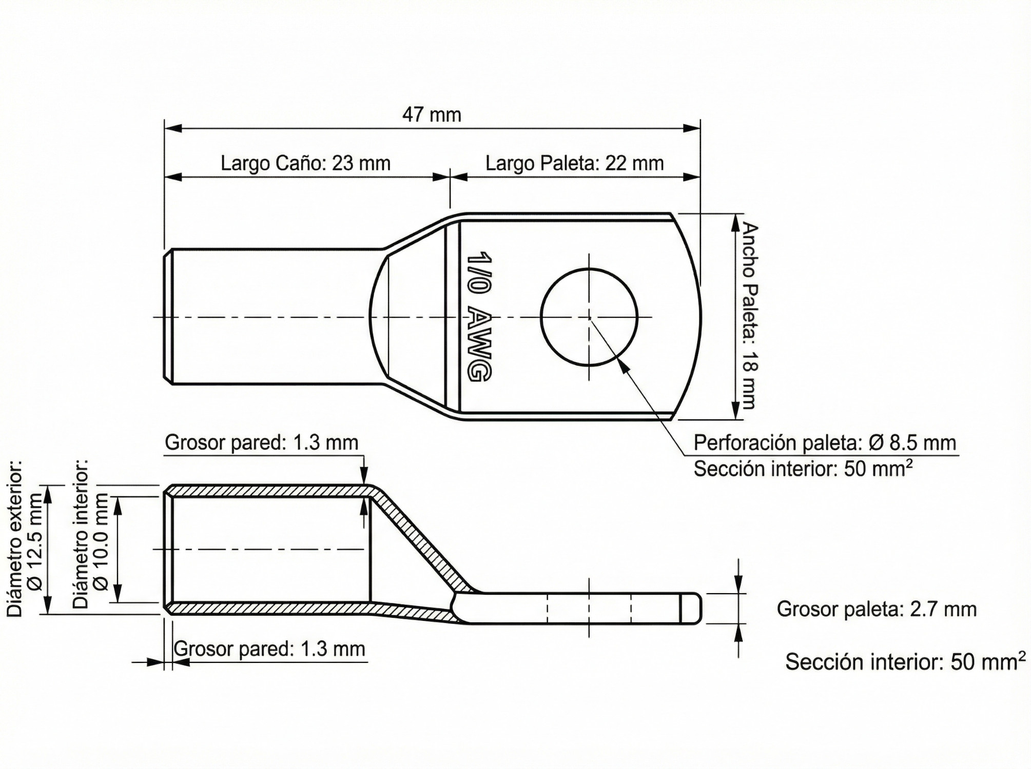 | Equivalencia AWG | 1/0 AWG (Comercial) |